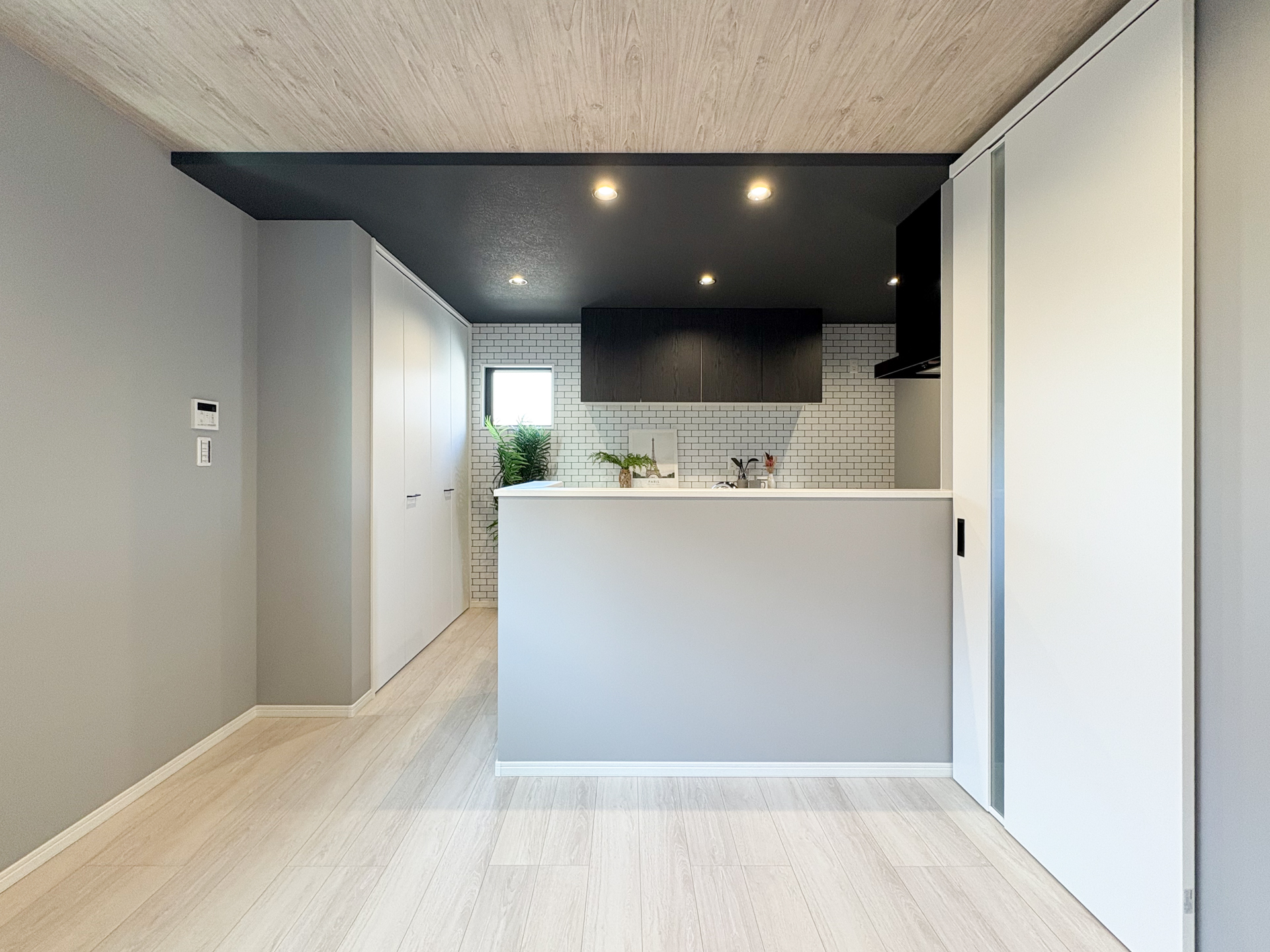 各室に不燃の石膏ボードを使用し、火災時の延焼を抑える。