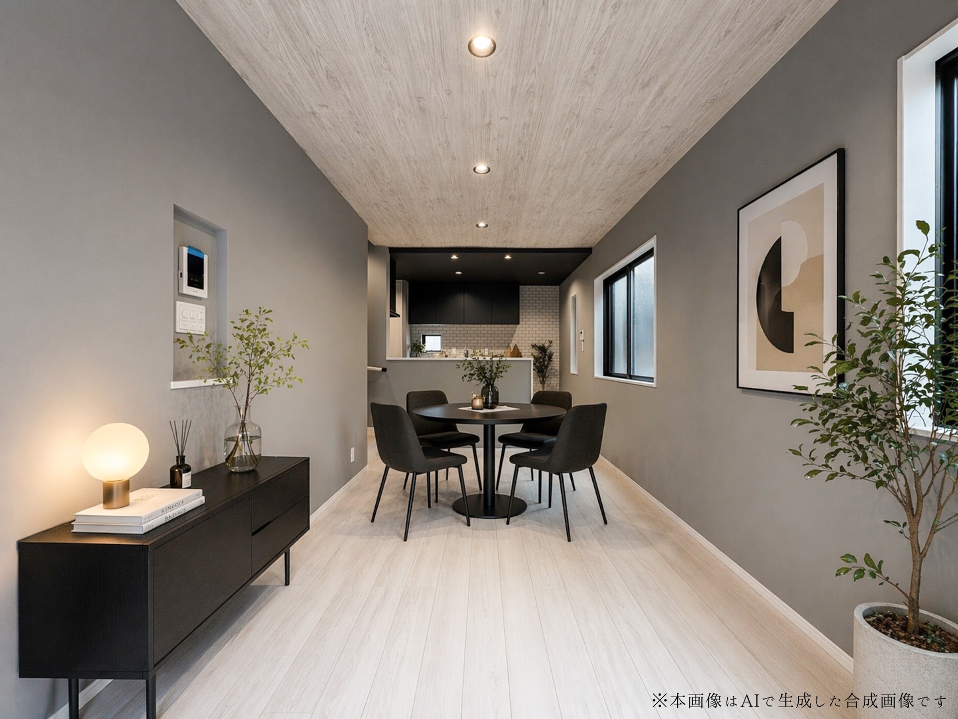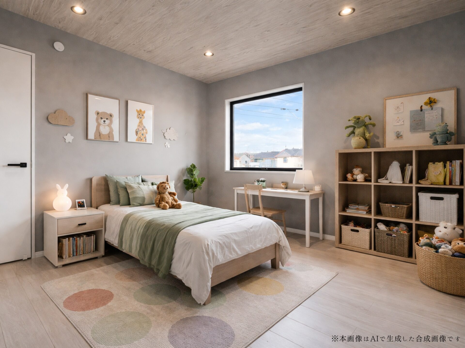 各室に不燃の石膏ボードを使用し、火災時の延焼を抑える。