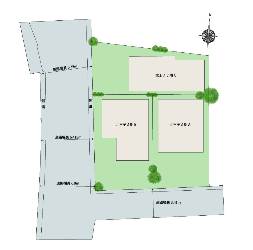南側4m幅、西側6.3m幅