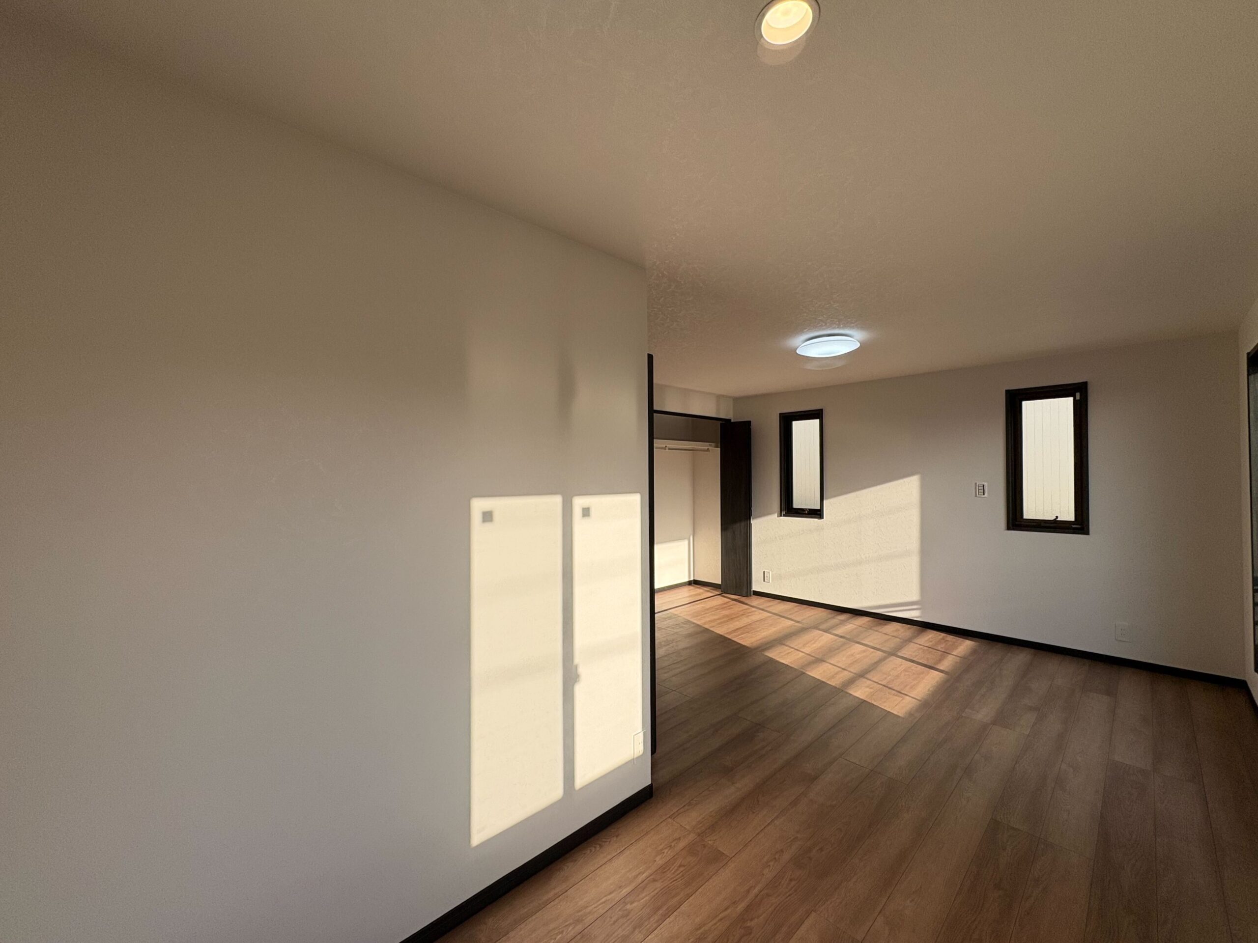 - 軽量鉄骨造、オール電化、お庭付き、駐車スペースあり、納戸、全居室収納スペースあり