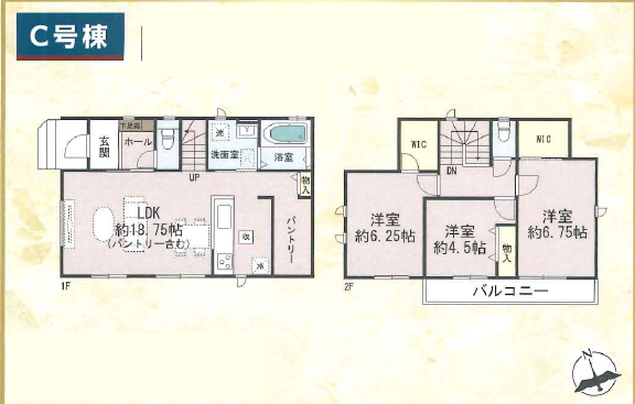 - LDK18.75帖、パントリースペース、WIC×2個所