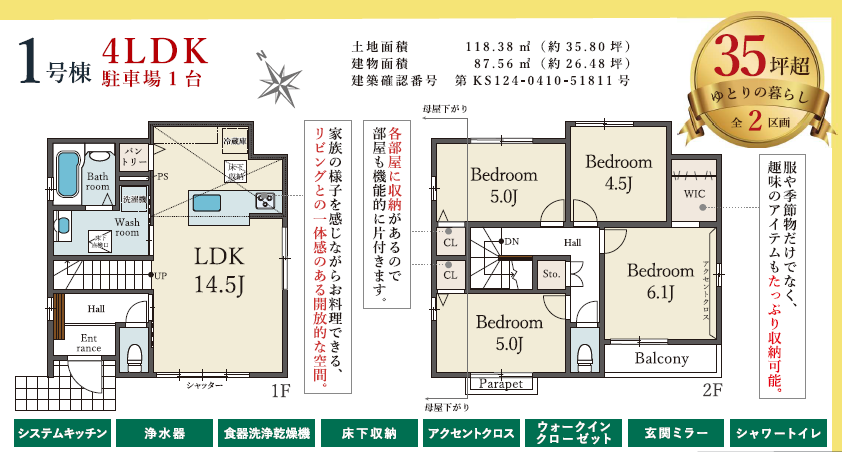 ■35坪超の敷地に、全居室収納&WIC完備の4LDK!機能的な間取りで家族の笑顔が絶えない暮らしを実現!