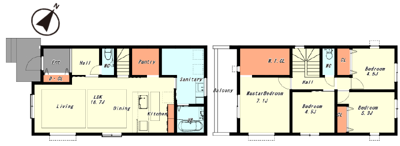 - 3SLDK+WIC付き、全居室収納あり、主寝室7.5帖、パントリー